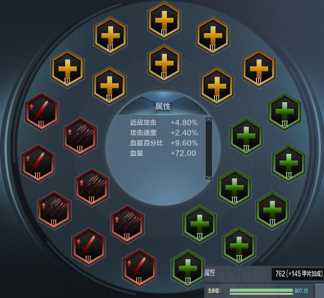 皮肤方面,目前有一套沙皇女帝,可以通过商城购买皮肤宝箱,皮肤兑换商城碎片兑换,交易行购买获得,皮肤有头盔腰饰和两个披风可供选择拆卸。我再给大家推荐一下甲片的带法,我会选择带近战,当然也可以带远程就像虞姬那样你可以选择多砍伤害也可以选择依托精确射击产生高额的远程伤害。红色方面,我配4个近战攻击4个攻速,你会发现叶卡捷琳娜可以用刀砍到别人无还手能力,黄色绿色,有两种选择,一种倾向于固定生命和生命百分比,因为叶卡捷琳娜的生命只有接近800,是比较低的,对于新手来说,可以选择提高血量保证存活,那另一种倾向于陷阵输出,黄色推荐4个内防和4个外防,内防可以进一步的提高叶卡捷琳娜的砍伤减免,而外防是用来降低所受远程及刺伤的伤害。绿色为8个破甲,因为大部分武将及其军团小兵都是外甲居高,选取破甲来削弱敌方的外甲,以达到更高的伤害。