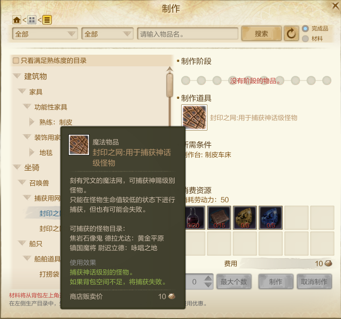 用于捕抓神话级怪物——通过各大地图的制皮车床制作或拍卖行直接购买,是用于捕抓boss的道具。(注:捕抓boss非必然成功,建议使用小号制作一个或购买一个,捕捉失败了在制作或购买另一个发给大号节约成本)
