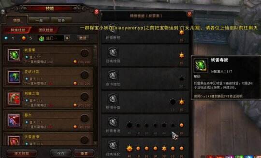 或许有人会问触发频率的问题,楼主告诉你完全不用担心,漩涡和锐牙都是伤害触发二不是攻击触发,也就是说任何伤害包括流血,毒之类的dot也能触发,实际使用中的情况就是CD到了就触发了。这里推荐把妖雷果的毒液这个精修给点出来,楼主带的宠物是狸猫带流血,基本上扔植物前甩一两下妖雷果,蓄力毒蜂的过程中 3个BUFF就全触发了。