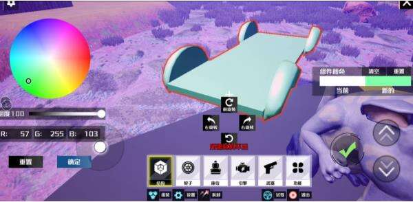 只是制造出载具零件还不够,大家还需要将载具组装起来,使各个基础零件相关联。点击游戏主界面右上角个人头像,弹出功能界面,选择载具功能。创建新载具,进入载具组装界面。在这里,可以对基础零件的颜色进行自由定制哦。