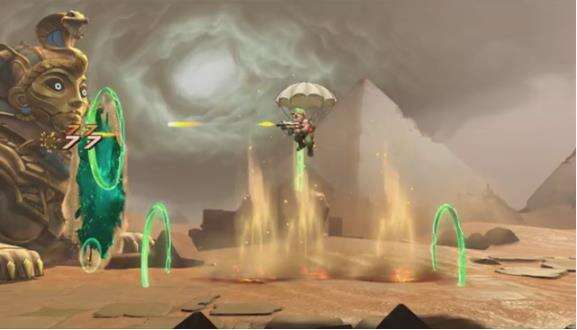 就像这个随身携带的降落伞,平时都是跳伞下来,到敌人的地盘上搅他个天翻地覆。在合金弹头觉醒里,我们还可以用他乘着上升气流来躲避敌人攻击,或者是飞到难以企及的高度,探索未知的区域。