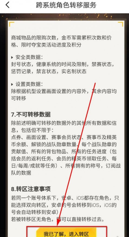 5、阅读系统角色转移服务,然后点击“我已了解,进入转区”按钮