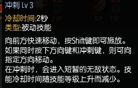 这是三级冲刺,三级冲刺由一级冷却时间6S减少成为2S。配合之后时术的瞬移,可以2S一瞬移,达到保命的效果,必满,消耗3SP。