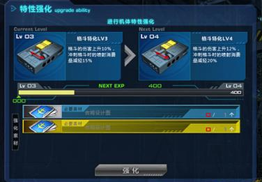 通过使用相同机体的设计图可以强化【机体特性】的等级,提升增加的能力: