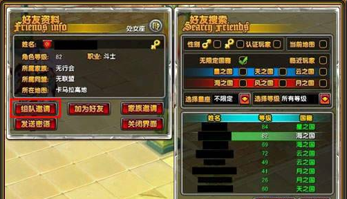 同样也可以使用好友搜索系统来完成对搜索出的玩家进行组队邀请。