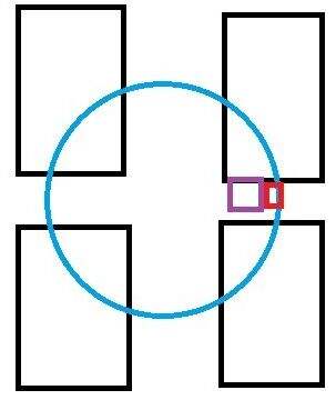 黑色为建筑,中间是道路。蓝色为骇进范围,紫色为掩体,红色为玩家