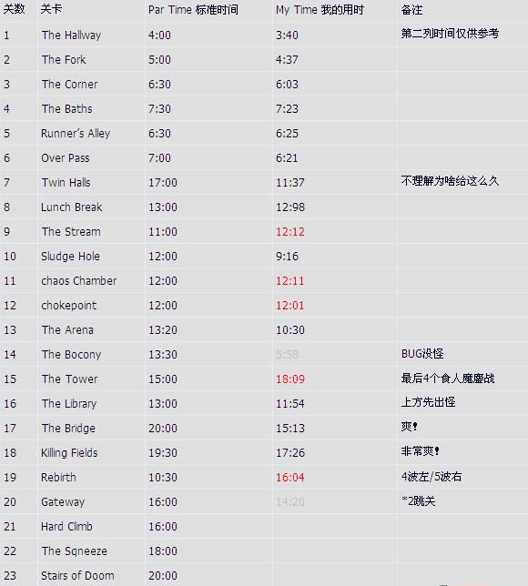 《兽人必须死》关卡标准时间统计表