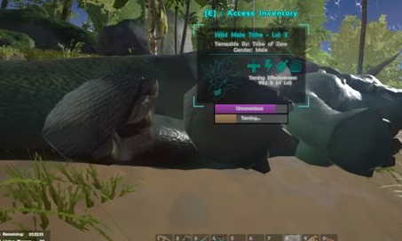 三角龙训好之后记得更改模式改成被动(Neurtal)这样在别人攻击你的时候龙会去帮你攻击他而且你不骑在陇上的时候没有体力限制跑的飞起。也可以利用龙来抗住霸王龙或者棘背龙你在后面用毒箭把他射晕。同理也可以杀其他的食草龙或者肉食龙来打肉和给龙升级