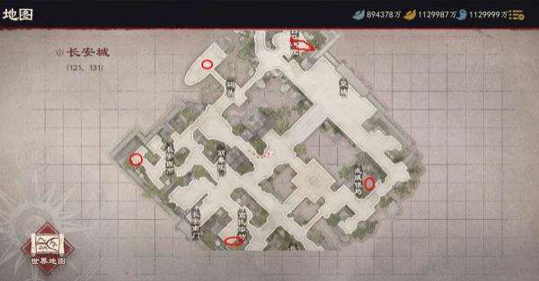 2、长安宝箱位置:(66,190)(151,213)(20,122)(91,61)(193,103)