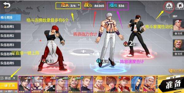 在选择阵容的时候,玩家可以从下面几方面来设定自己的上阵格斗家。