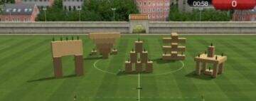 建议:根据脚下的方向指引,并按X键施展准确的力度传向足球以击中目标。选择其中结构较不稳的箱子建筑来作为目标。