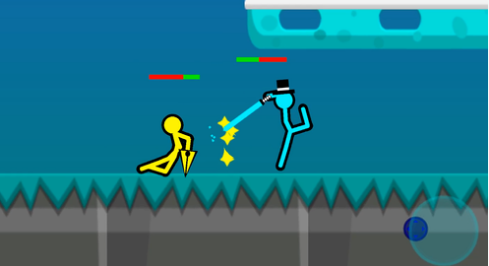 玩家在游戏中操控一个火柴人,利用简单的横版摇杆操作操控火柴人进行热血格斗。