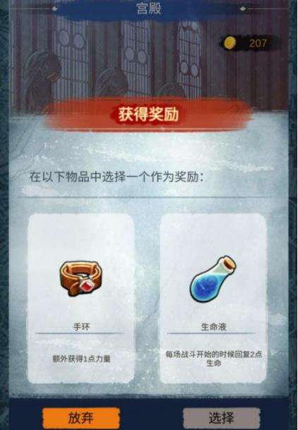 3、篝火的老者每一章都会为我们提供一次帮助,最高35点的血量回复、随机的一点力量或坚韧的属性方面加成,二选一,根据大家需求进行选择。第三章我们需要帮老者找到他失去的眼睛之后,才能获得帮助。