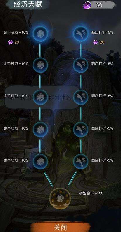 增加获取速度及商店折扣,这游戏目前看经济并不缺少,唯一作用可能就是能入手商店秘器,减少被强塞非酋包的可能性。最终天赋没有尝试过,可能更活力天赋一样的 80 90 100吧。
