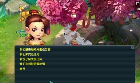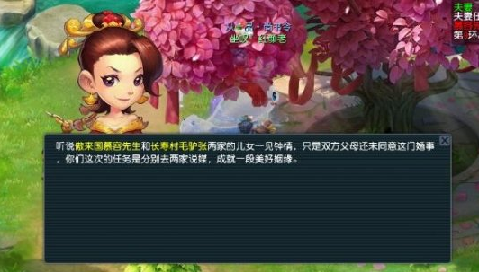 夫妻任务是专属于异性情侣的特殊任务,需要两人共同完成。任务每10次为一轮,完成后可以得到一定的经验和友好度奖励,是夫妻双方增加友好度的主要方式之一。夫妻双方以组队的方式到女儿村许愿树下的红娘(55,76)处领取任务。