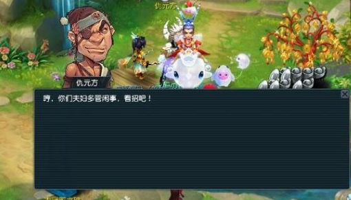 夫妻双方组队按照红娘的提示,到指定地点与恶霸战斗即可,对面一个或两个怪,战斗无难度。