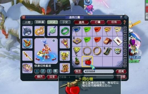 队长会得到一个“同心锁”的道具,夫妻组队到达红娘提示的三处场景中的任意一处,右键使用同心锁即可完成该任务。涉及到的场景包括大唐国境、大唐境外、长寿郊外、花果山、东海湾、江南野外、龙窟、凤巢、北俱芦洲、月宫等。一般来说为提高效率,以选择最容易到达的场景为主,但也不反对夫妻双方为加深感情选择到一些风景优美的地方共赏美景并留下美好的印记。