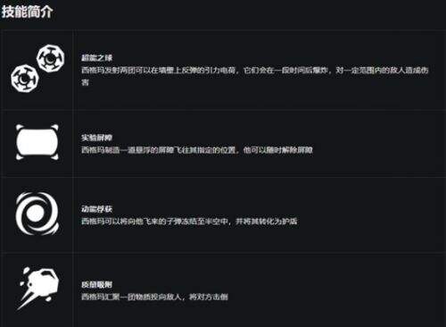 西格玛发射两团可以在墙壁上反弹的引力电荷,它们会在一段时间后爆炸,对一定范围内的敌人造成伤害