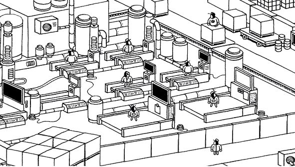 搞怪幽默是本作的第一印象。手绘的线条场景很细致,尤其一些比较大型的地图里面的要素之多令人震撼,并且其中的大部分东西是可以进行简单的交互的。有的元素相当于意外的彩蛋设计,有的则关系到游戏进度。