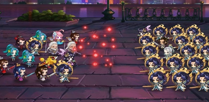 游戏玩法是一个队伍有15个角色组成,每个角色都带有一个主动释放技能或被动加属性技能,队伍施法是根据角色站位先后以及概率决定的,详细去游戏玩一玩就大概知道了。