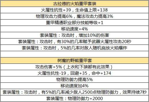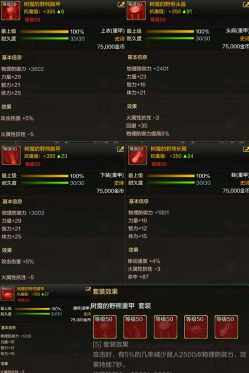 50级史诗重甲防具有2套,分别为树魔的野熊套装和古拉德的火焰重甲套装。