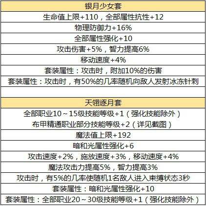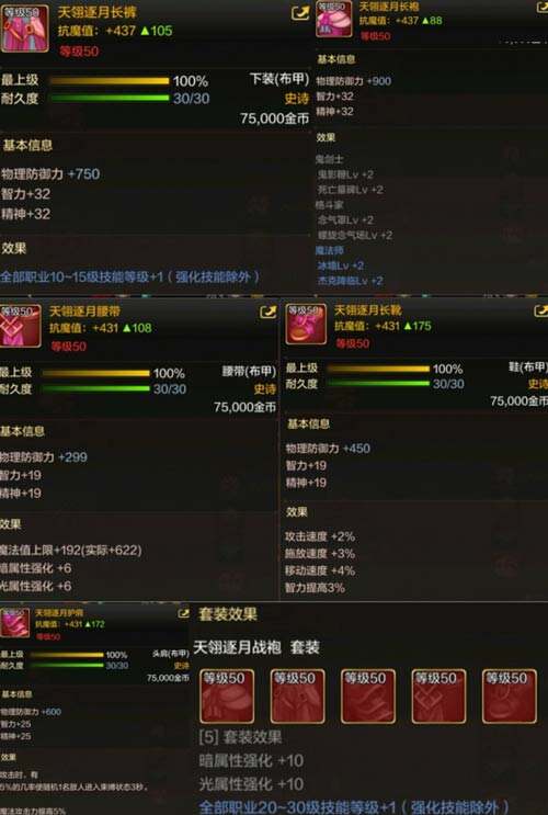 50级史诗布甲防具有2套,分别为银月少女的时尚装束套装和天翎逐月套装。
