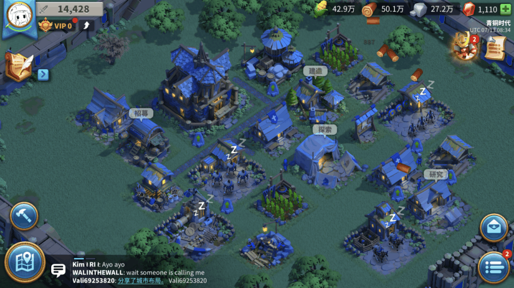 然而知道加入联盟后,才发现抱团抱晚了。联盟在游戏中不仅仅意味着互不进攻利益与共,也不单纯是为了独占资源和收益副本,初期入坑就能享受到大家庭的红利。可通过点击联盟中心弹出的提示一次性予以帮助,自己在建设设施或是研究科技时,也能够申请求助,获得联盟成员一次次一分钟的加速支持,大大缩减前期发育时间。
