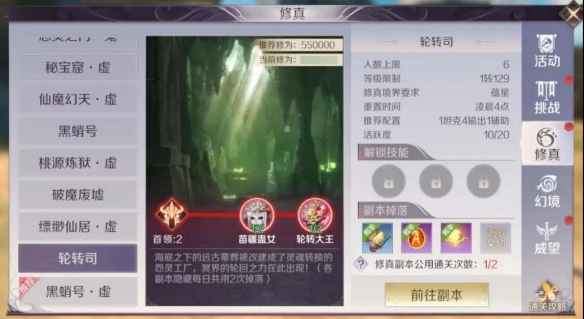 轮转司为3-6人本,修真者满足以下条件即可参与挑战: