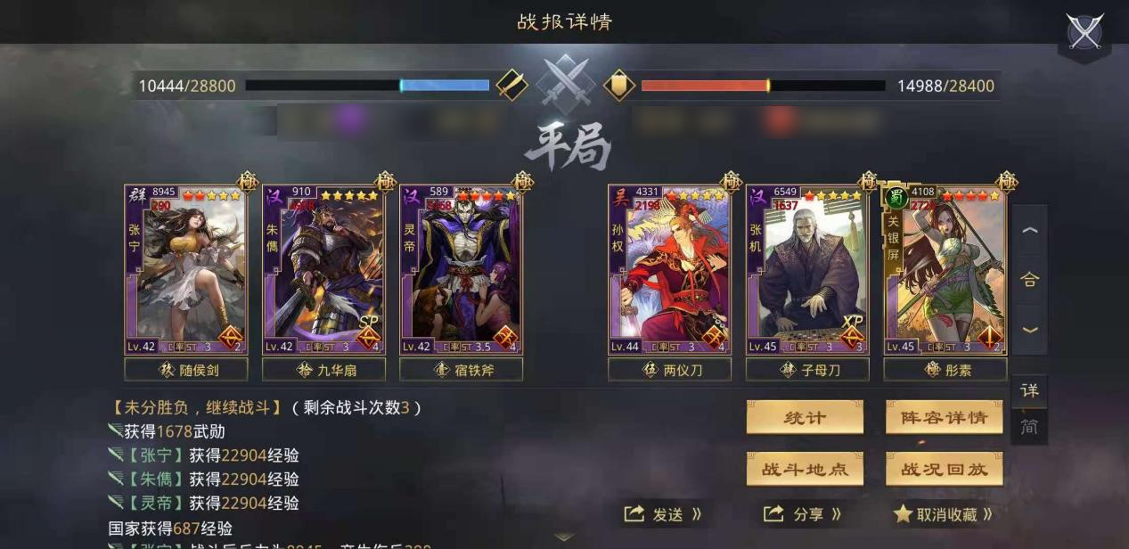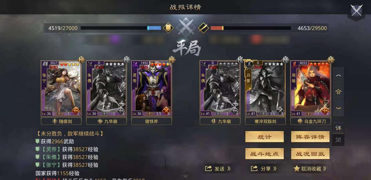 最后,打架如果出现战平情况,优先查看灵帝剩余兵力,如果灵帝兵力低于60%就可以主动撤退了。