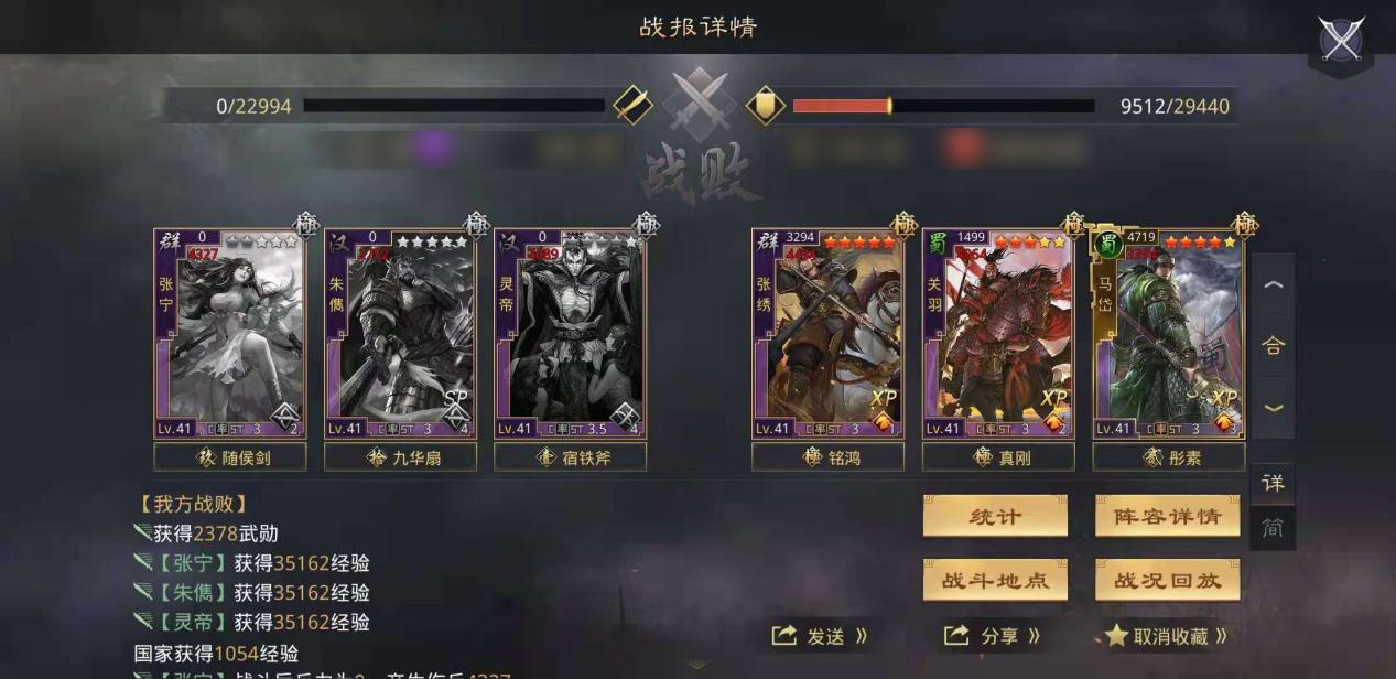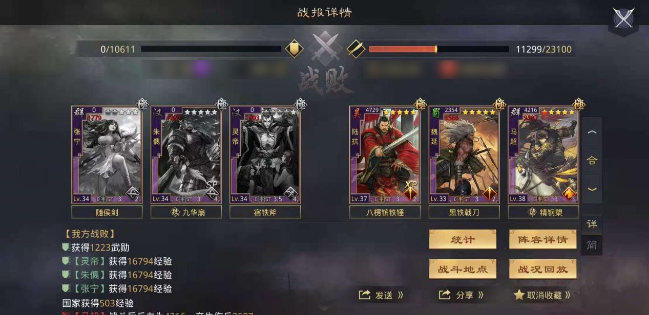 最后要说一句,这队最大的劣势是残兵作战能力非常差,毕竟前锋灵帝战损很高,打第二轮时候,灵帝兵力不够,指挥伤害就上不去了。所以打出平局先看灵帝剩余兵力,少于60%建议撤退了。
