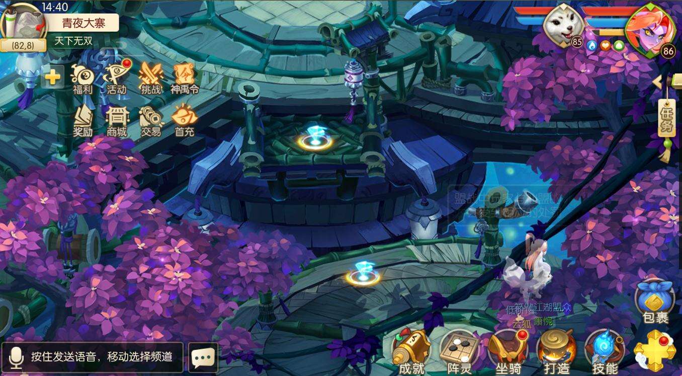 和中原地区的其他地图相比,青夜大寨的整体色调呈冷色调。并且背景音乐优雅适合两个人在这里感叹人生。聊聊彼此的过去与未来。甚至还能在少有人知的小角落相约一起连麦。
