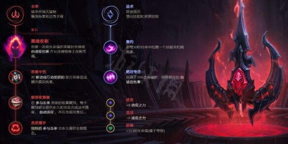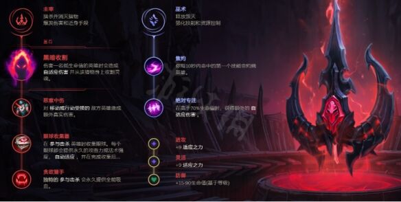 同样的光辉也适合这套符文,利用黑暗收割获得的伤害加成,使光辉在中后期的爆发伤害越来越高,恶意中伤配合光辉的Q技能和E技能都能起到很好的效果,眼球收割器来提升光辉的输出伤害,贪欲猎手提升光辉的续航能力。焦灼搭配绝对专注打出更高的伤害。