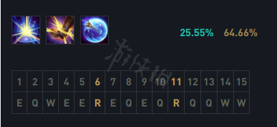 光辉前期就可以获得巨大优势,无限Q技能和E技能打出的伤害可以在三波消耗中将敌方英雄击倒,利用QER一套连招可以直接将敌方英雄秒掉。团战中光辉主要负责远程控制消耗,防止刺客贴脸即可。