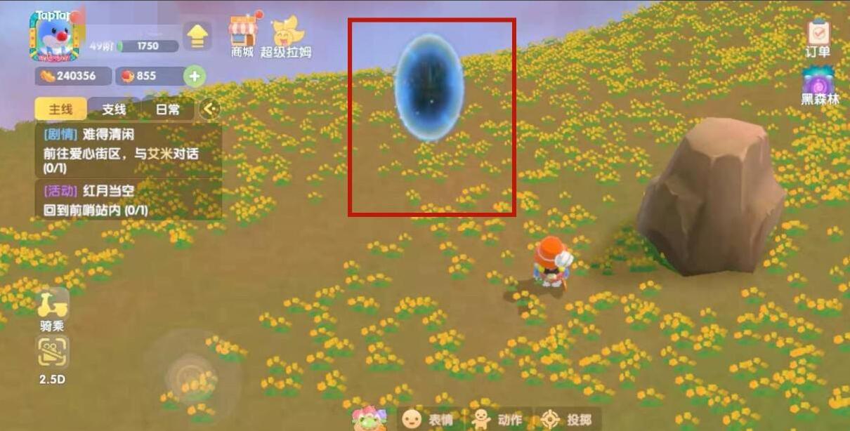 这个黑森林的进入方法相信很多玩家都应该是知道的,直接点开传送门就可以了,要记住可可果的位置不是在树上哦,是在地上一个黄色的果实,还是很显眼的,相信玩家可以一眼就瞅到。