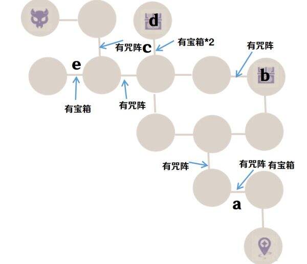 d处:宝箱房,需要开启机关,宝箱在顶部