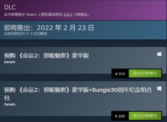 邪姬魅影豪华版的售价为319元,而增加了30周年纪念组合包的售价为399元。