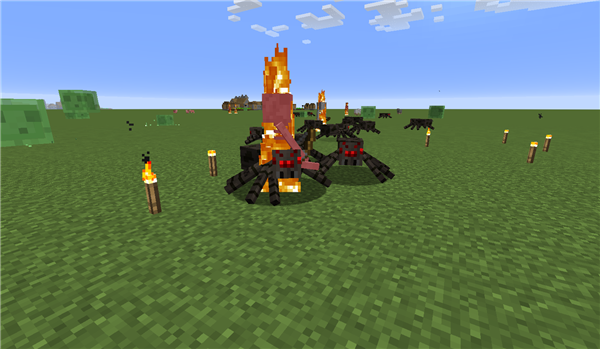 不过,有趣的是,白天蜘蛛并不会因为有骷髅射手骑着它们就变得凶暴起来,而骷髅射手也不会因为骑在蜘蛛上而变得免疫阳光,因此,这一对组合在白天变得异常乏力——蜘蛛对你没什么兴趣,而骷髅射手很快则会被阳光灼烧致死。