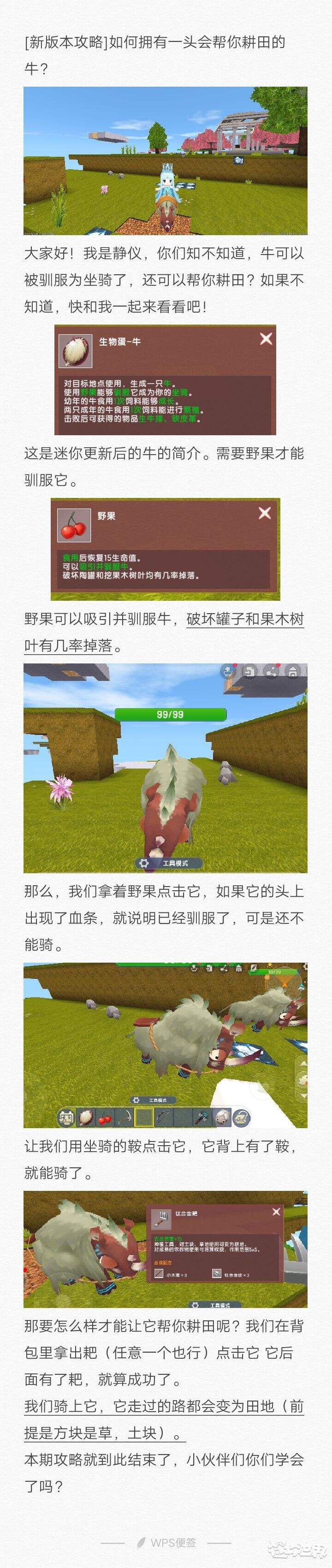 迷你世界如何拥有一头会帮你耕田的牛