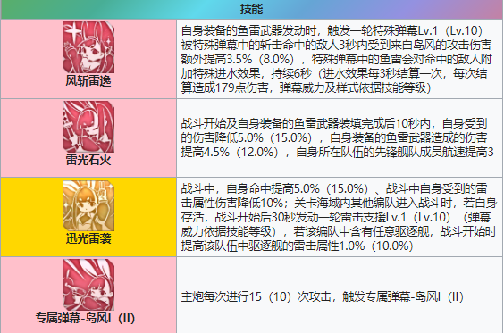 命中提高增加暴击率,跨编队支援鱼雷弹幕。