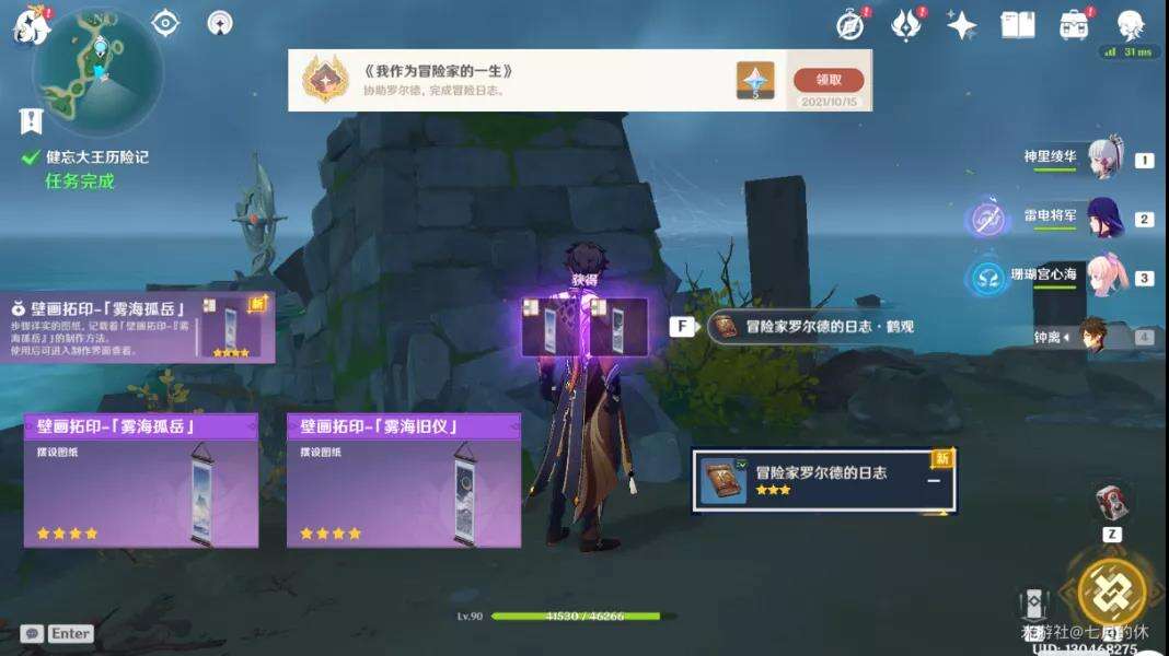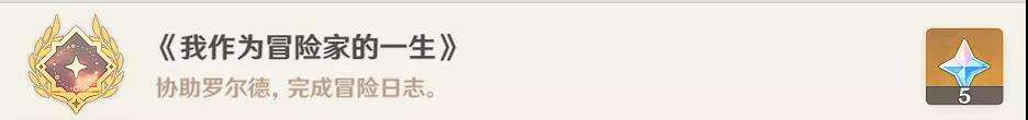 任务奖励:20原石+2w摩拉+2张紫色壁画摆设图纸+ 隐藏成就:我作为冒险家的一生+《罗尔德的冒险家日志》