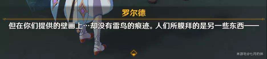 任务的最后我们在和罗尔德的对话中获得新的线索。鹤观岛有着两代文明,第二代文明就是雾海纪行系列任务所介绍的雷鸟文明,第一代文明较为神秘,我们只能从壁画上推断一些信息。