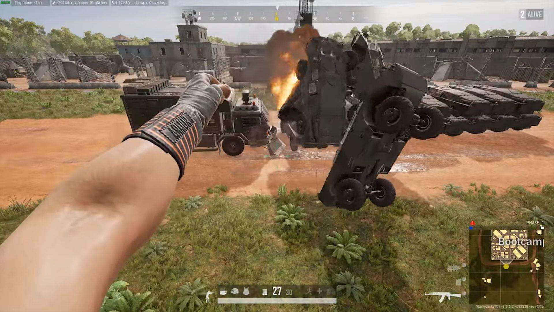 当你摧毁它时,记得躲远点,因为物资车爆炸的时候后门是可以飞很远的,并且这个后门可以淘汰玩家,你肯定不会喜欢被门击杀的感觉。(仿佛站在物质车后面被它一个屁嘣死的感觉)