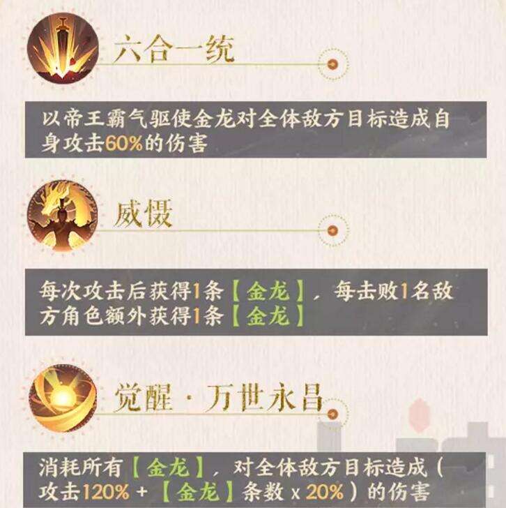 2、韩非,提升赢政[觉醒●万世永昌]最高40%攻击力的伤害。