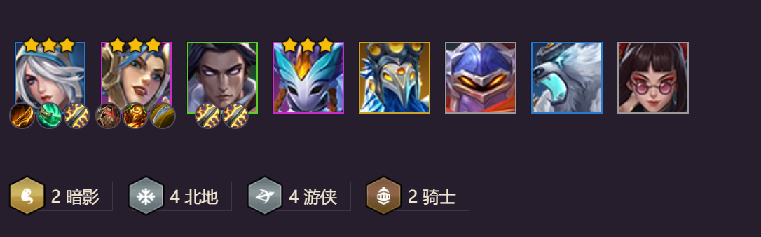 2、阵容分析:天罚弩神可以搭配游侠职业的阵容,这里搭配的是4游侠的阵容,可以激活4游侠羁绊效果。