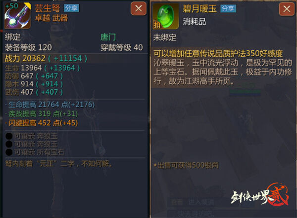 届时,侠士在探索衡道书·丹书时,将有机会获得全新稀有道具:碧月暖玉,可用于拜访任意金色护法的信物。还将有机会获得在将75品金色装备升品至120品装备时的必要升品道具:赤火陨铁。