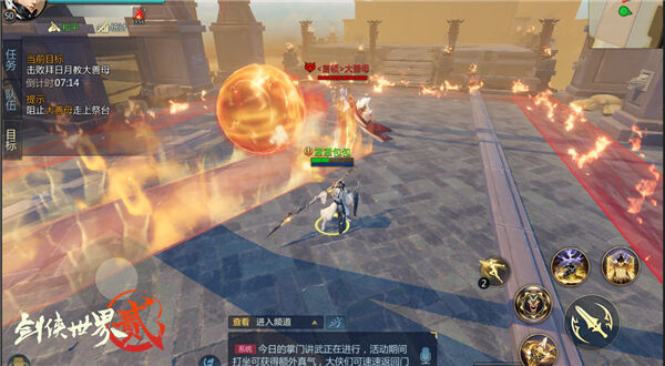 在丹书·中篇中,继续挑战的少侠们,将到达一片神秘的祭坛,继续探寻三兄弟的下落,而此战面对BOSS拜日月教大善母,尤要注意避免被神火妖法所灼伤,合理的走位躲避火焰的攻击。