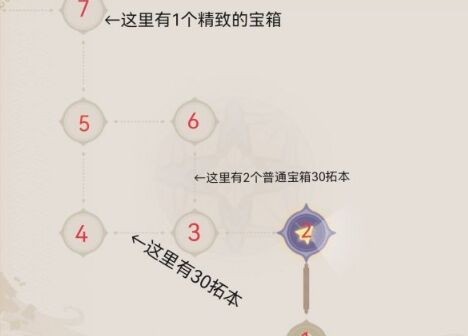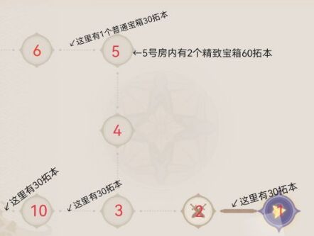 在6、3通道内有2个普通的宝箱,1个调查点30拓本