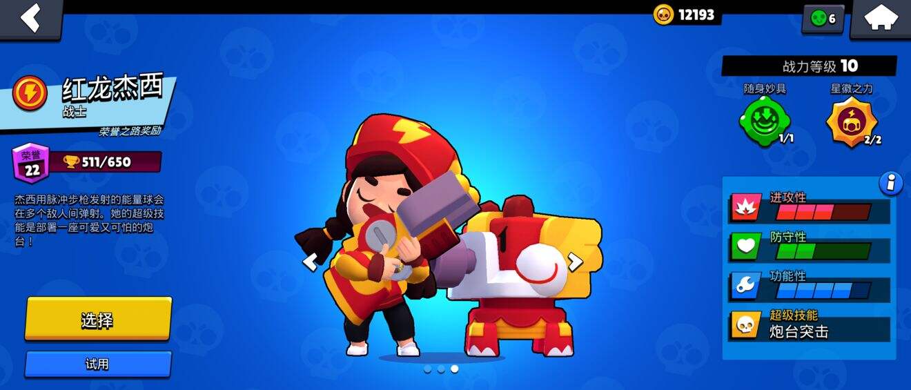 杰西在荣誉之路500杯时解锁,是少数能打出AOE伤害的英雄。杰西是BOSS的最佳选择之一,与雪莉正好相反。