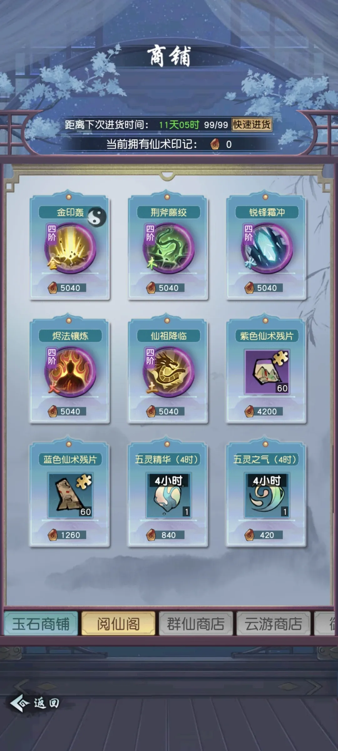 商店获取:我们进入商铺,在玉石商铺、阅仙阁、群仙商城等一系列商城中可以找到这些技能,如果刷出了龙腾五岳就可以直接购买这个技能了。