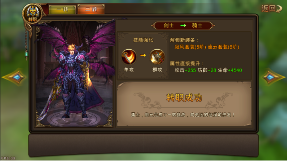 此外,每个职业还有转职的机会。当等级到达一定的级别时,就可以进行转职了,转职的特殊之处在于强化初始技能,变单攻为群攻,还可以提升升级时赠送的属性点。